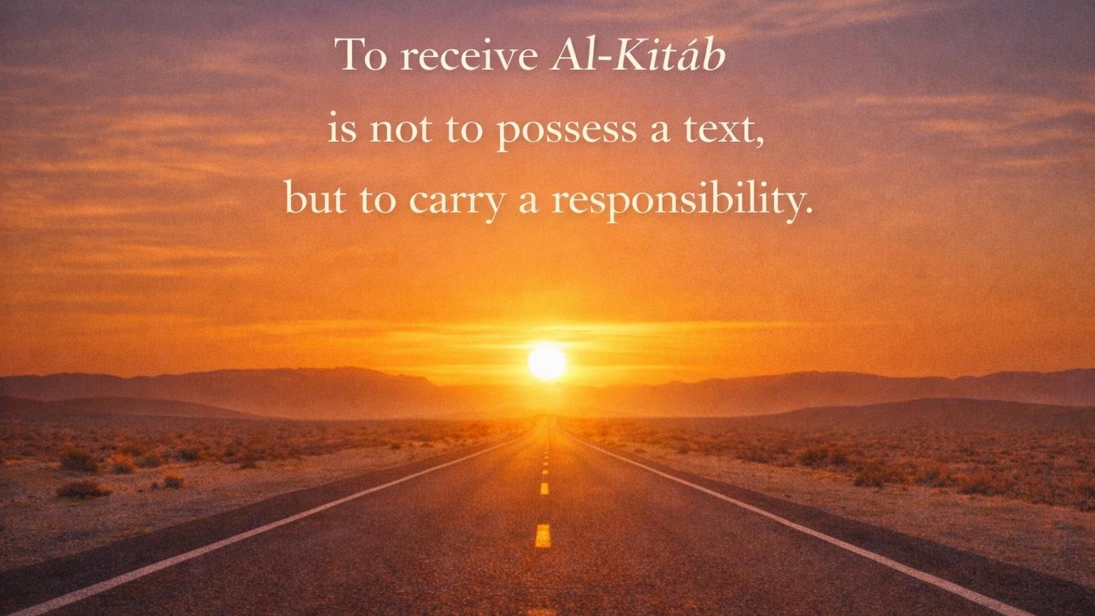 To receive Al-Kitāb is, on the contrary, to accept a mission that passes through us without belonging to us.