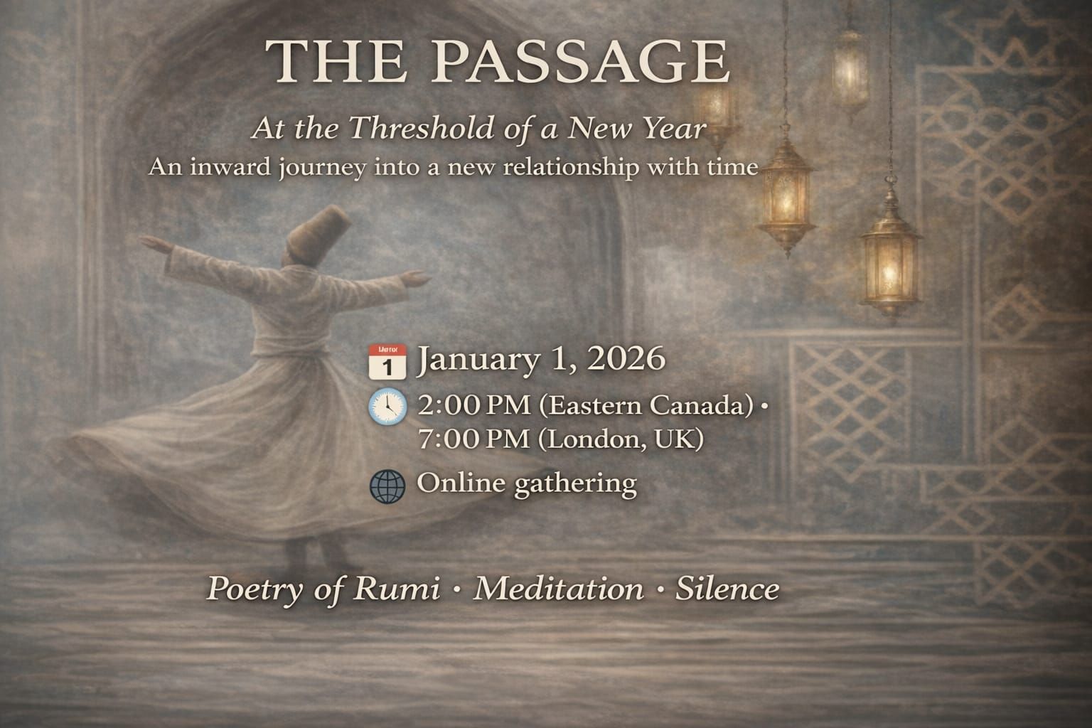Join us online for the first Café Rumi of 2026, each from our own threshold, with a cup in hand and a shared moment of presence.
