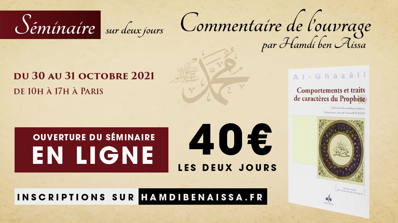 Pour cette occasion, je vous invite à deux journées d’études qui porteront sur le livre de l’Imam Al-Ghazali « Comportements et traits de caractère du Prophète Mohammed », issu de sa célèbre œuvre « La Revivification des Sciences de la Religion ».
